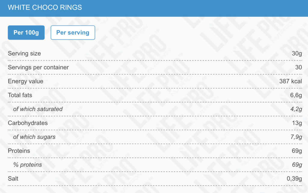 Whey Gourmet 900g is the new whey-based protein concentrate that has been designed in Gourmet 900g flavours. With over 72% protein, it is a high quality supplement that contributes to meeting your daily protein requirements. Life Pro’s new Whey Gourmet 900g protein has a concentration of between 72 and 77% depending on the flavour chosen. In the Gourmet line, the aim is to offer the best protein supplement, with an intense flavour unlike anything ever seen before. It is of high quality and high biological value, as it contains all the essential amino acids. To improve the digestion process, the Digezyme digestive enzyme complex has been incorporated into Whey Gourmet.Lacprodan SP-8011 Instant whey protein concentrate, a patented formula of high quality and purity, with a low fat and carbohydrate content, has been used.