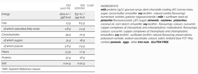 Perfect before or after exercise, or as a functional snack between meals, this bar combines taste and performance without sacrificing quality.